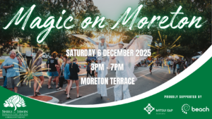 Please be aware that Moreton Terrace will be closed from 1pm to 9pm on Saturday, 6th December 2025. This is to allow for the community celebration of Magic on Moreton.
