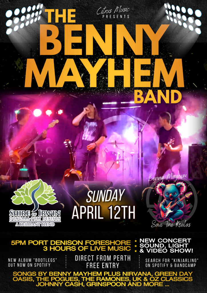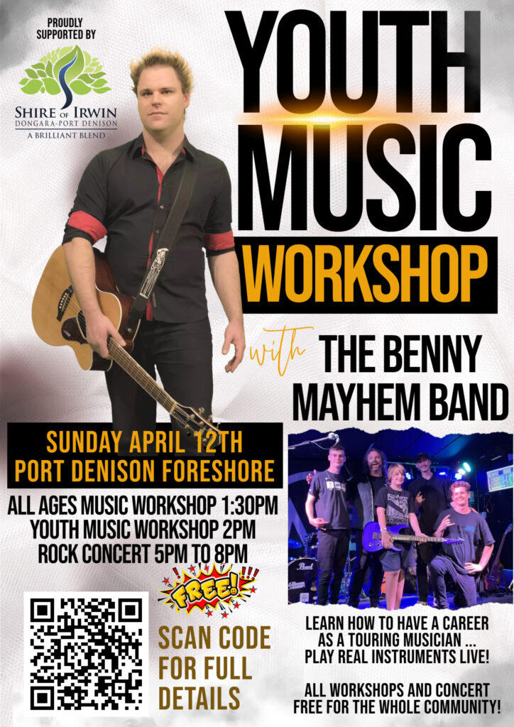 Join us at the Port Denison Foreshore for a special Youth Week music event featuring The Benny Mayhem Band. Bring your own picnic blanket and enjoy a relaxed afternoon and evening of live music by the coast.